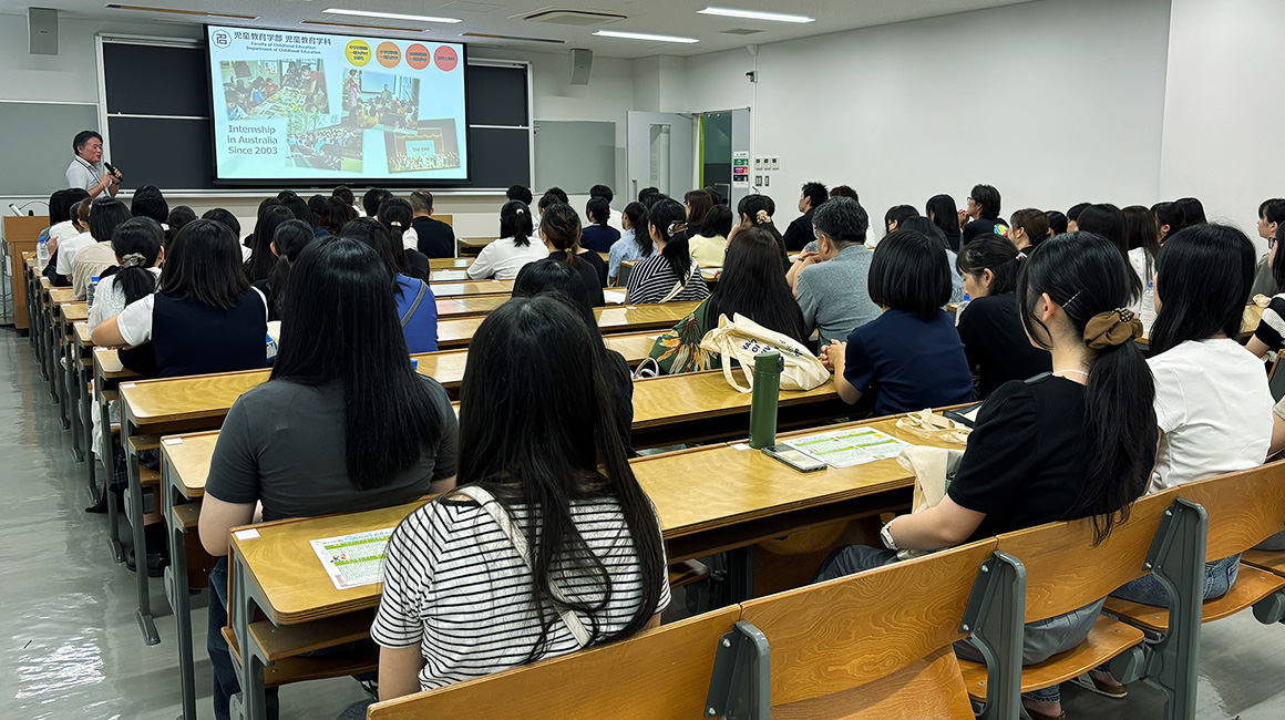 将来、保育者・教育者として活用できる英語での自己紹介を体験する短いフリートーク活動を行います。英語を「使って伝える」楽しさを感じながら、保育・教育現場で役立つ実践的なコミュニケーション力を育てる本学の学びを紹介します。
