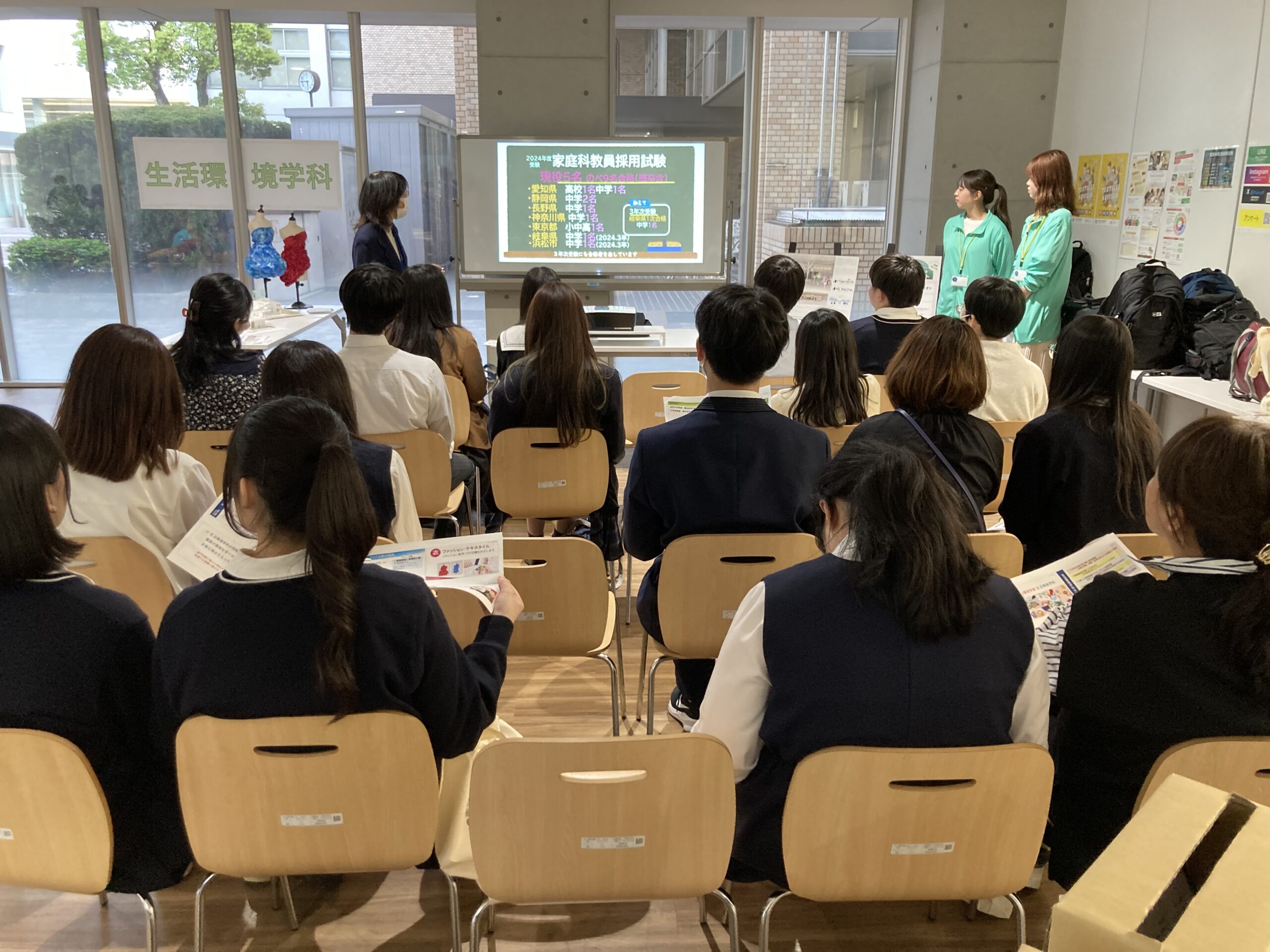 年内入試の選抜方法や留意点などについて紹介する「入試説明」を実施。学科について知りたい方は、詳細を個別に相談できるコーナーもあります。